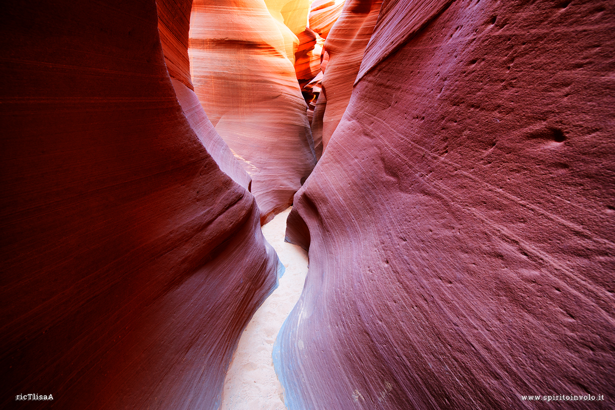 Uno strettissimo passaggio si insinua nelle surreali e multicolorate viscere della Sacra Terra dei Navajo.