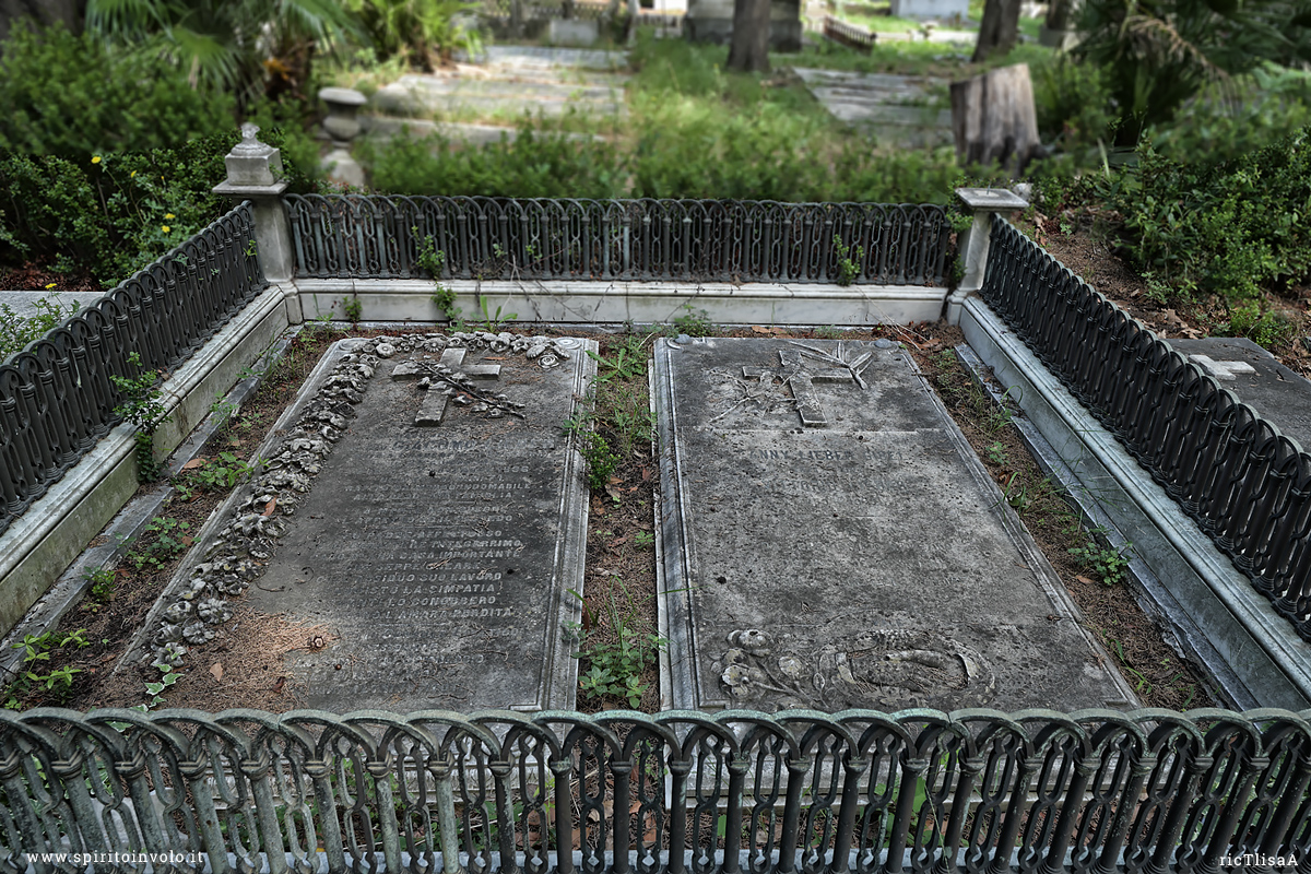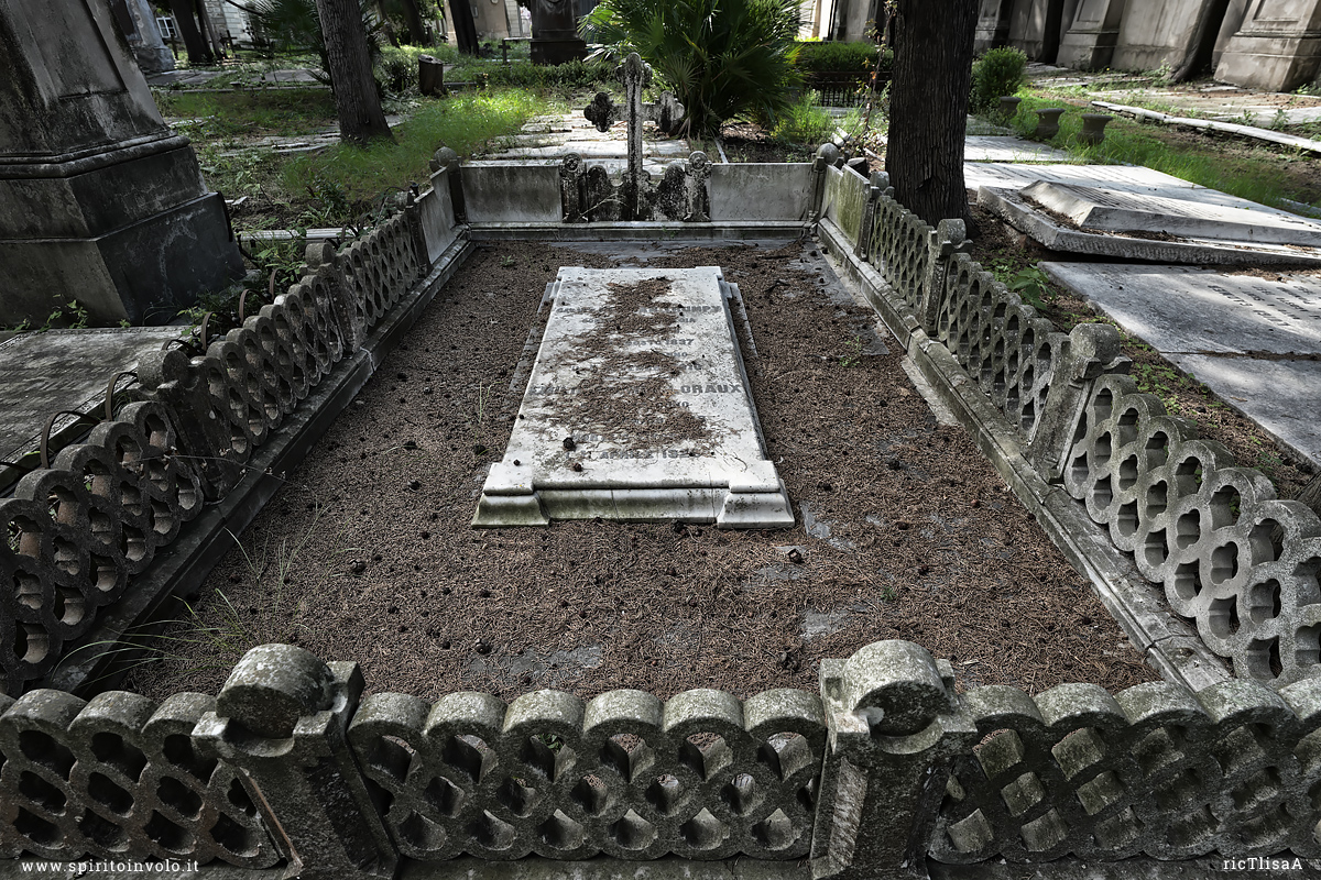 Cammino lentamente cercando con cura di non calpestare le tombe che sono tutte a terra, allineate, le poche lapidi verticali, spoglie ed essenziali, si fondono con gli alberi e le piante che le circondano creando un mistico ed accogliente giardino nel quale è semplice lasciarsi andare ed ascoltare i loro racconti.