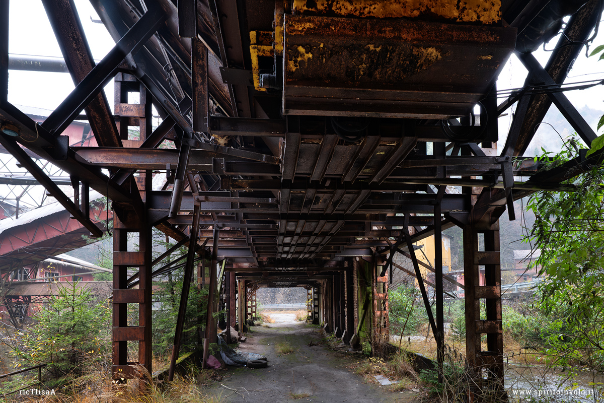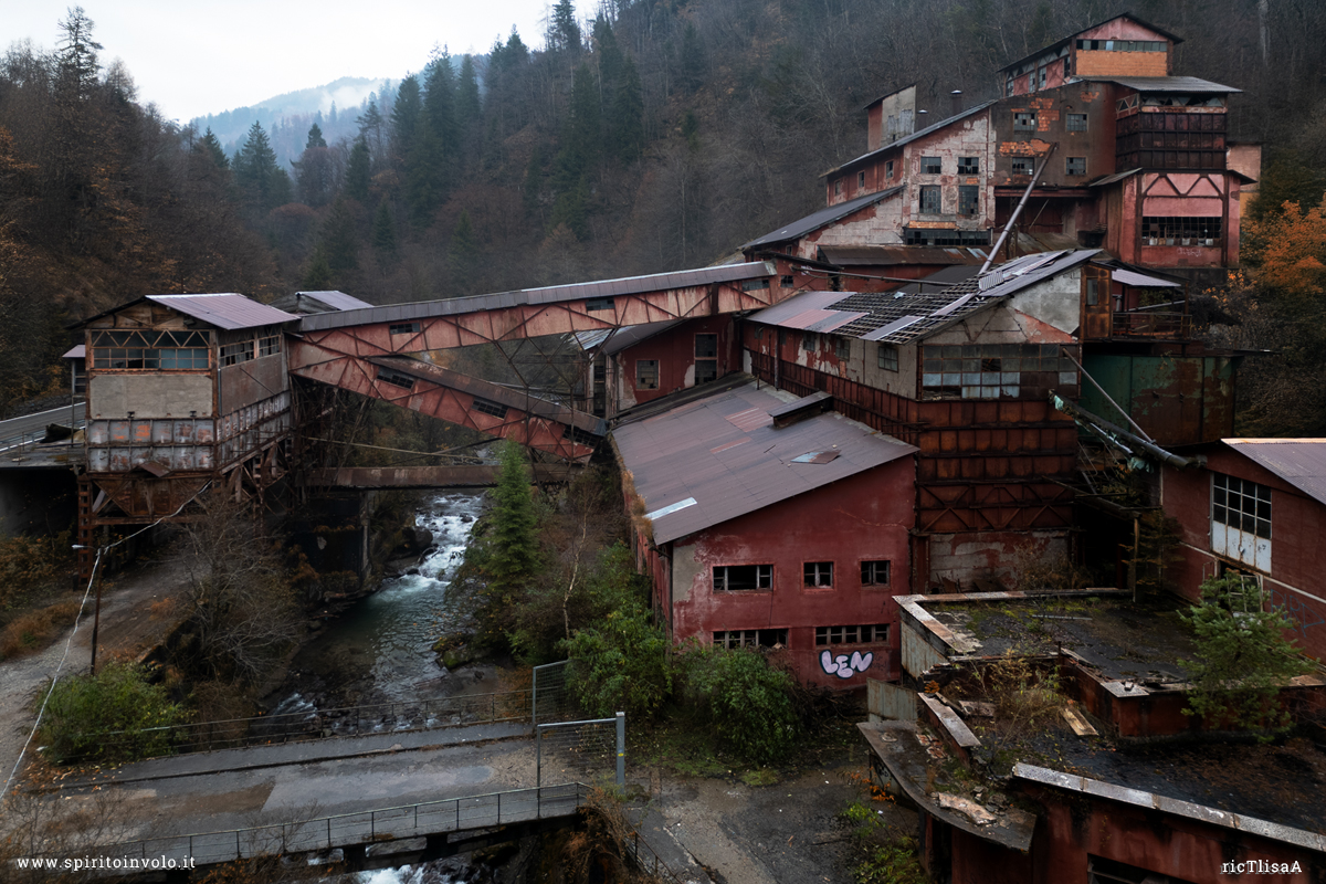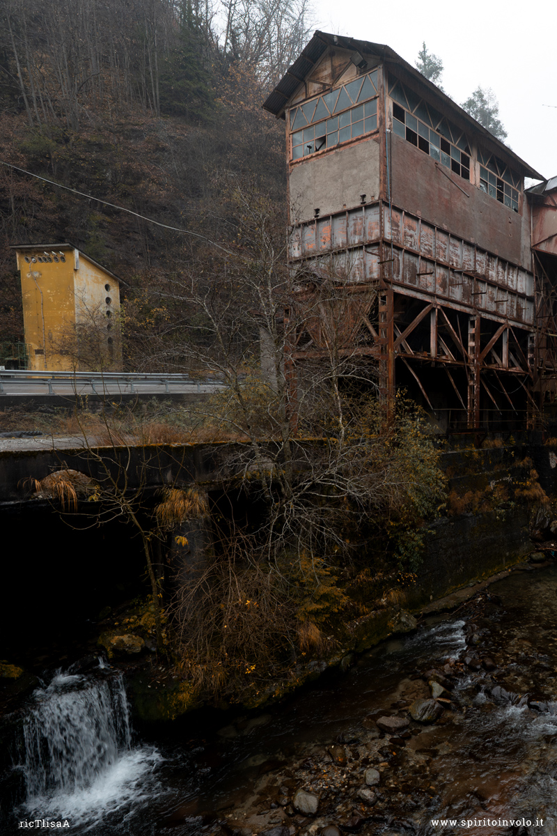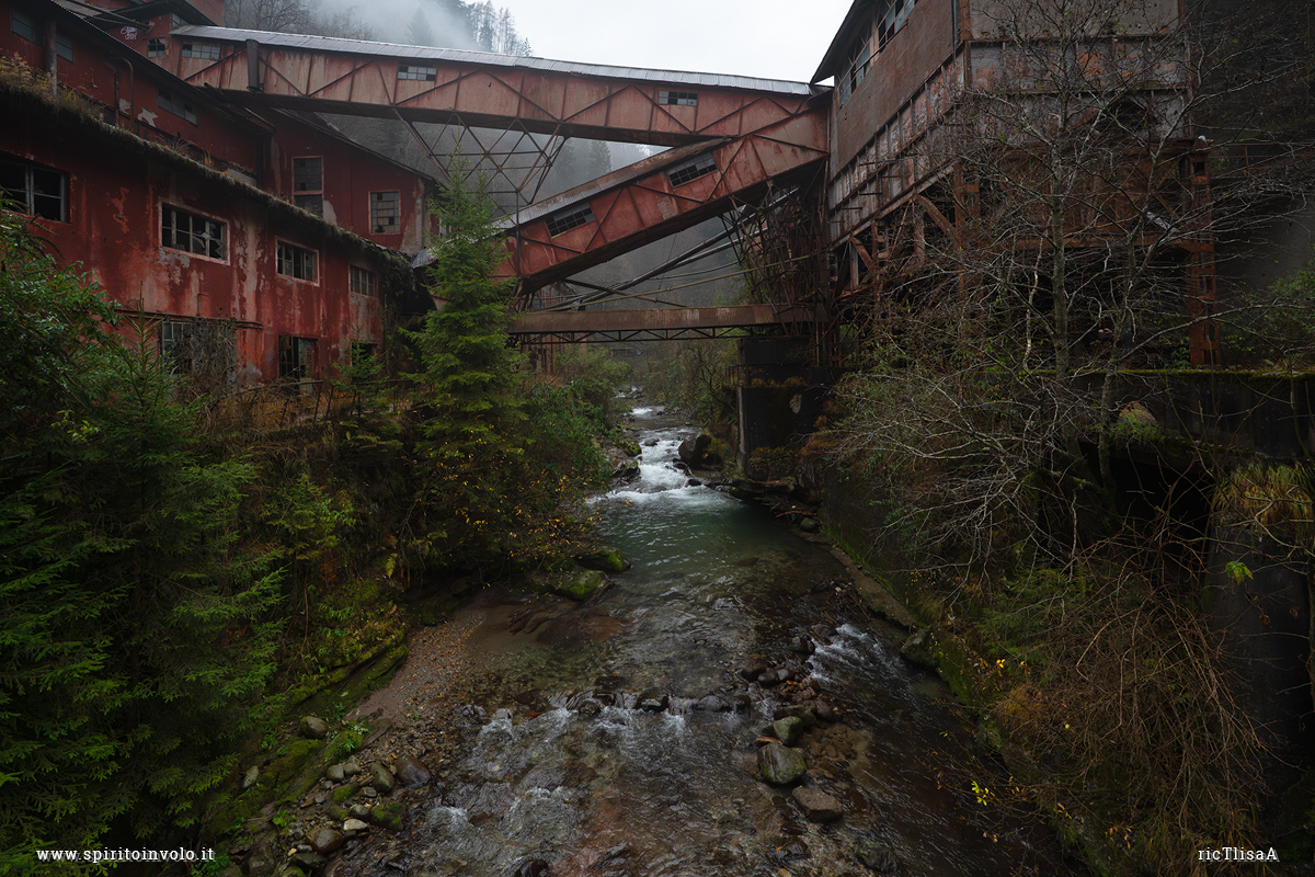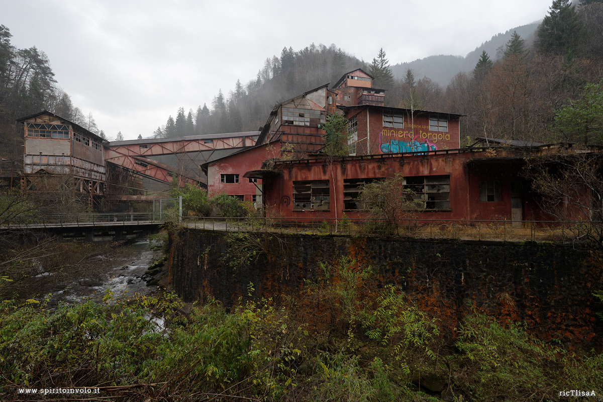 La nebbia che riempie la stretta vallata e la pioggia che cerca di trafiggerla creano una visione onirica e surreale, la strada, immersa nel foliage, appare a tratti e subito dopo si dissolve per emergere di nuovo ed è allora che alzando gli occhi mi appare come un magnifico etereo castello fiabesco, sono alla miniera Torgola.