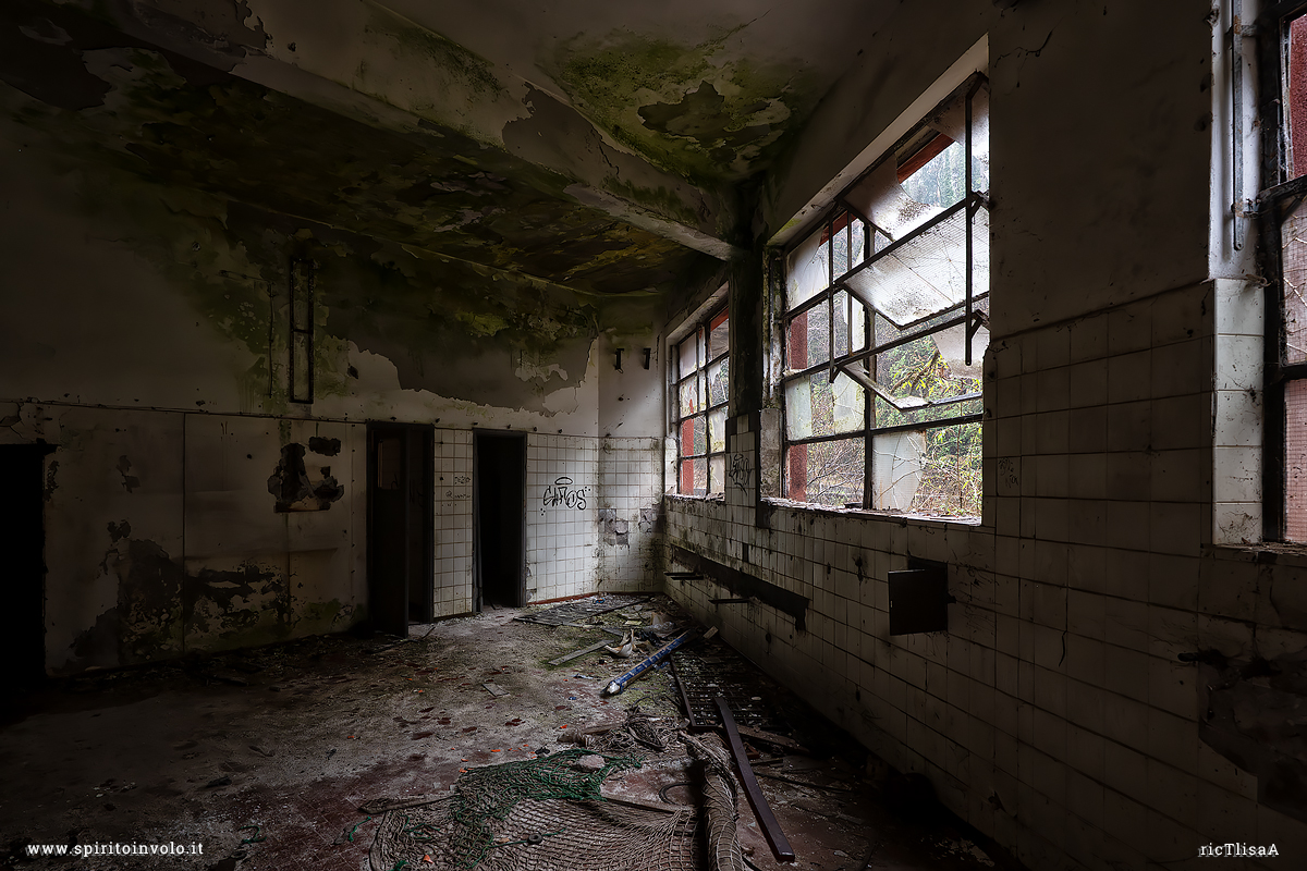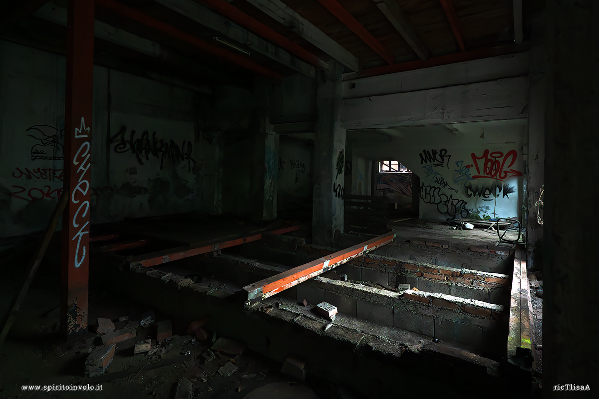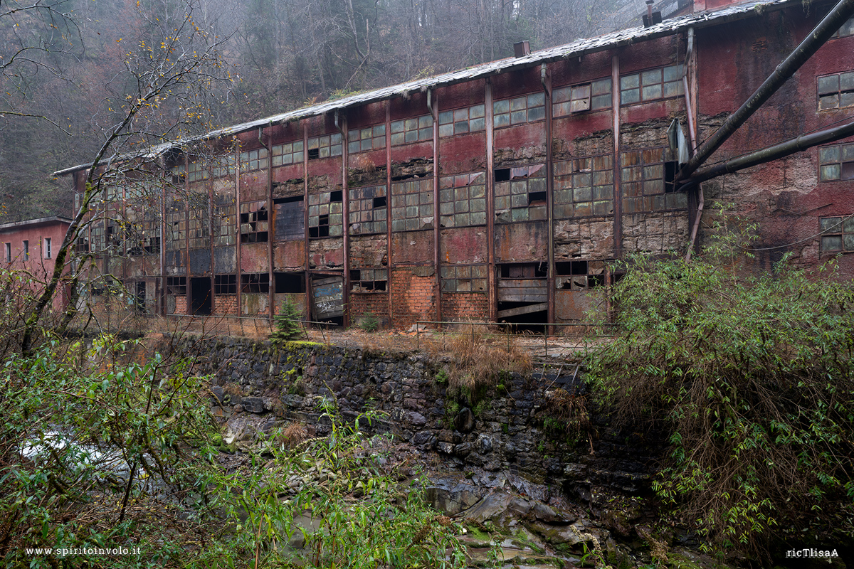 E’ un attimo la nebbia si alza e la pioggia si attenua, ebbro dall’eccitazione che da sempre mi procurano i luoghi industriali abbandonati, esco dall’auto e mi addentro nei suoi pericolosissimi e maledettamente oscuri visceri, l’edificio gronda acqua da tutte le parti, le scale, ormai logore e tramortite dalla ruggine, scricchiolano sotto i miei scarponcini, decido che in questo momento sia troppo pericolosa e violentandomi ridiscendo al piano terra. Non so se sia vero ma si dice che la vecchiaia porti la saggezza.
