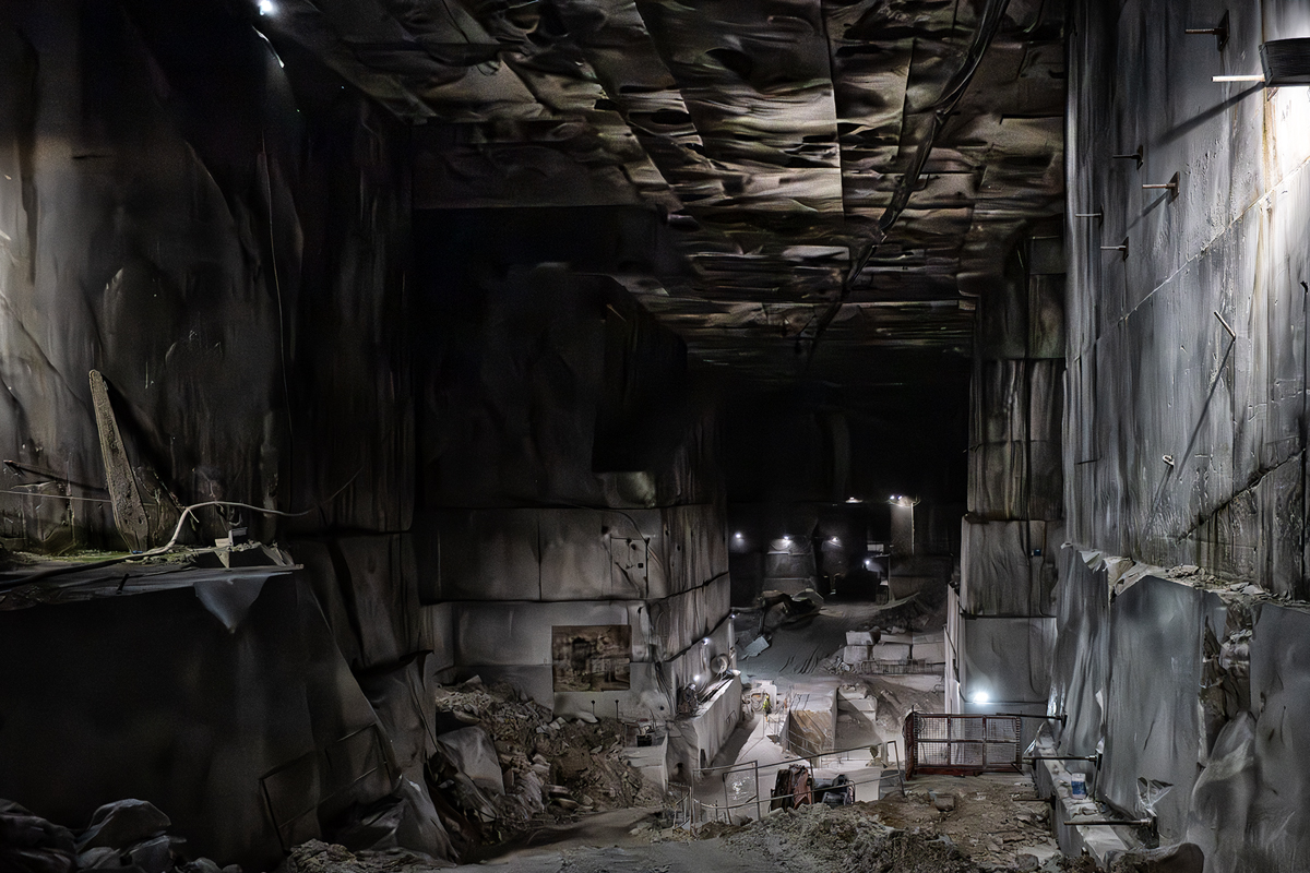 La lunga e stretta galleria scavata nel Monte Torrione va percorsa lentamente assaporando ad ogni passo il percorso che ti porterà dentro le viscere della montagna fino a raggiungerne il cuore, la Cattedrale del Marmo, 25000 metri cubi di straordinaria bellezza tappezzati dal prestigioso Marmo Bianco di Carrara.