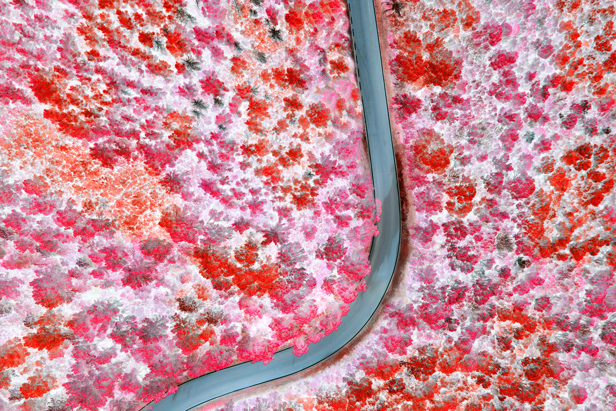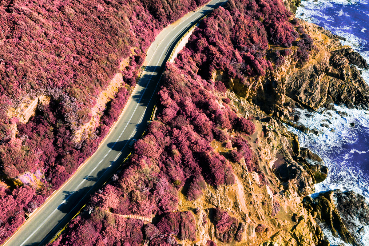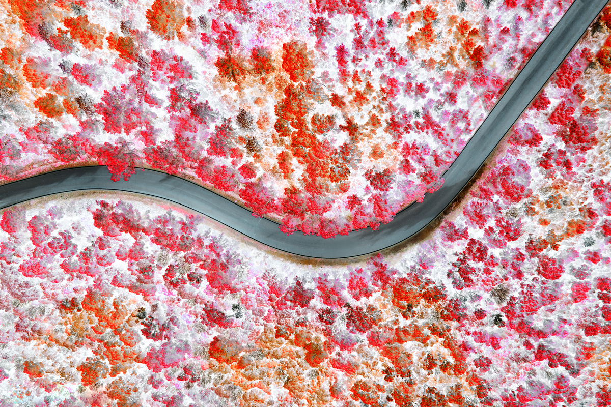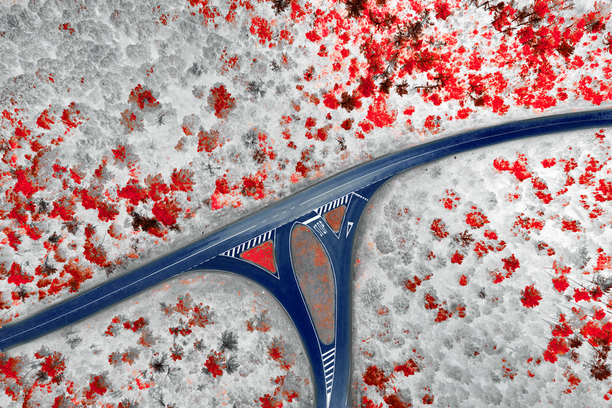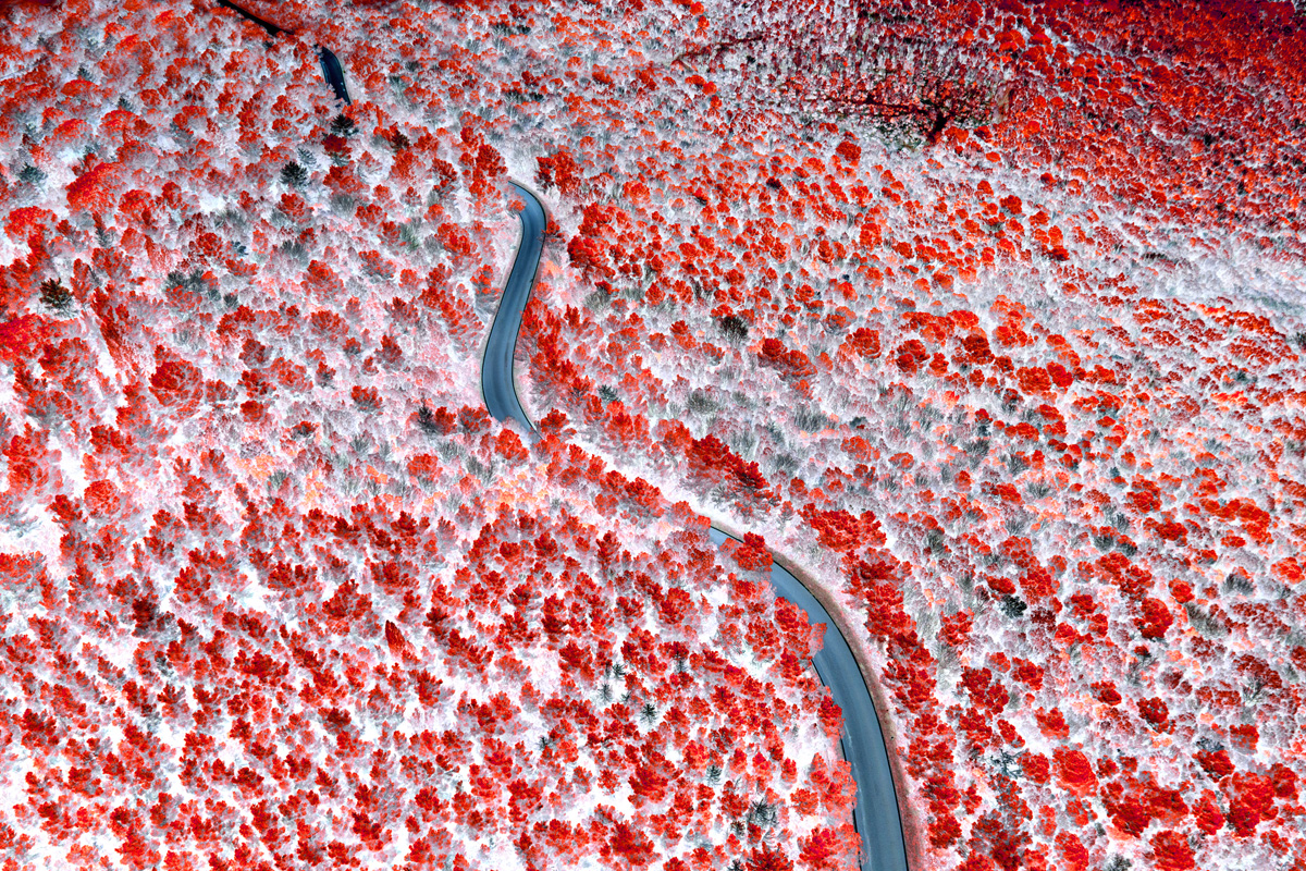 Frammenti di asfalto, visti dal drone, si immergono nell'invisibile luce dell'infrarosso attraversando eterei e surreali paesaggi, un mondo che vive accanto a noi ma che solo inconsapevolmente abitiamo.