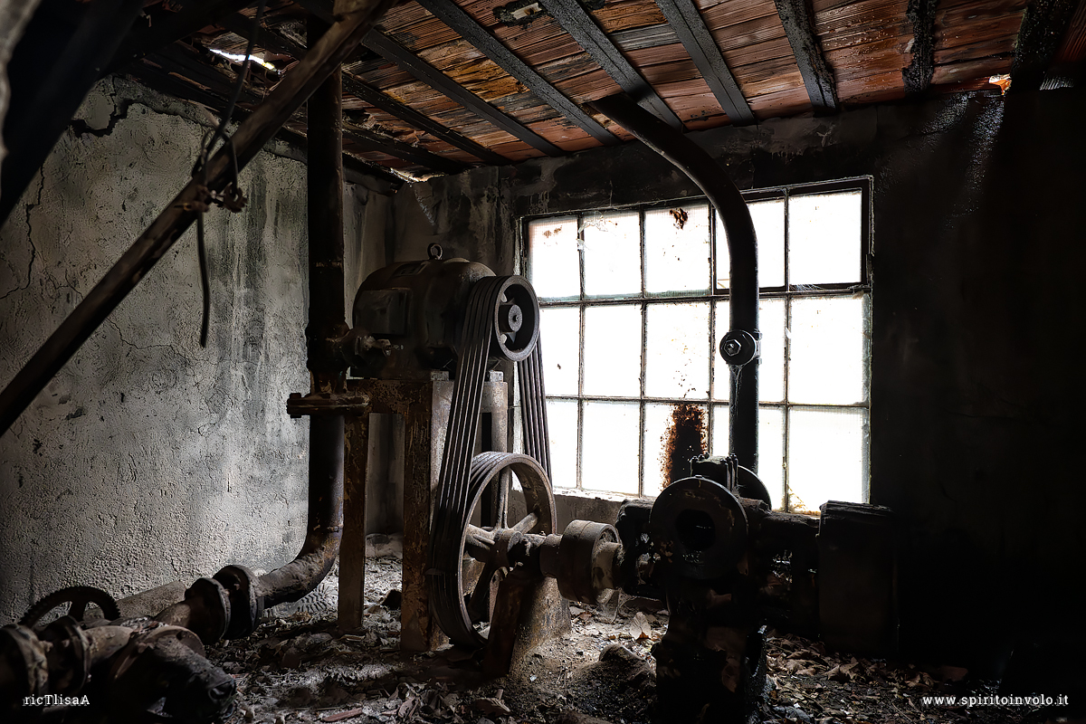 E’ un attimo la nebbia si alza e la pioggia si attenua, ebbro dall’eccitazione che da sempre mi procurano i luoghi industriali abbandonati, esco dall’auto e mi addentro nei suoi pericolosissimi e maledettamente oscuri visceri, l’edificio gronda acqua da tutte le parti, le scale, ormai logore e tramortite dalla ruggine, scricchiolano sotto i miei scarponcini, decido che in questo momento sia troppo pericolosa e violentandomi ridiscendo al piano terra. Non so se sia vero ma si dice che la vecchiaia porti la saggezza.